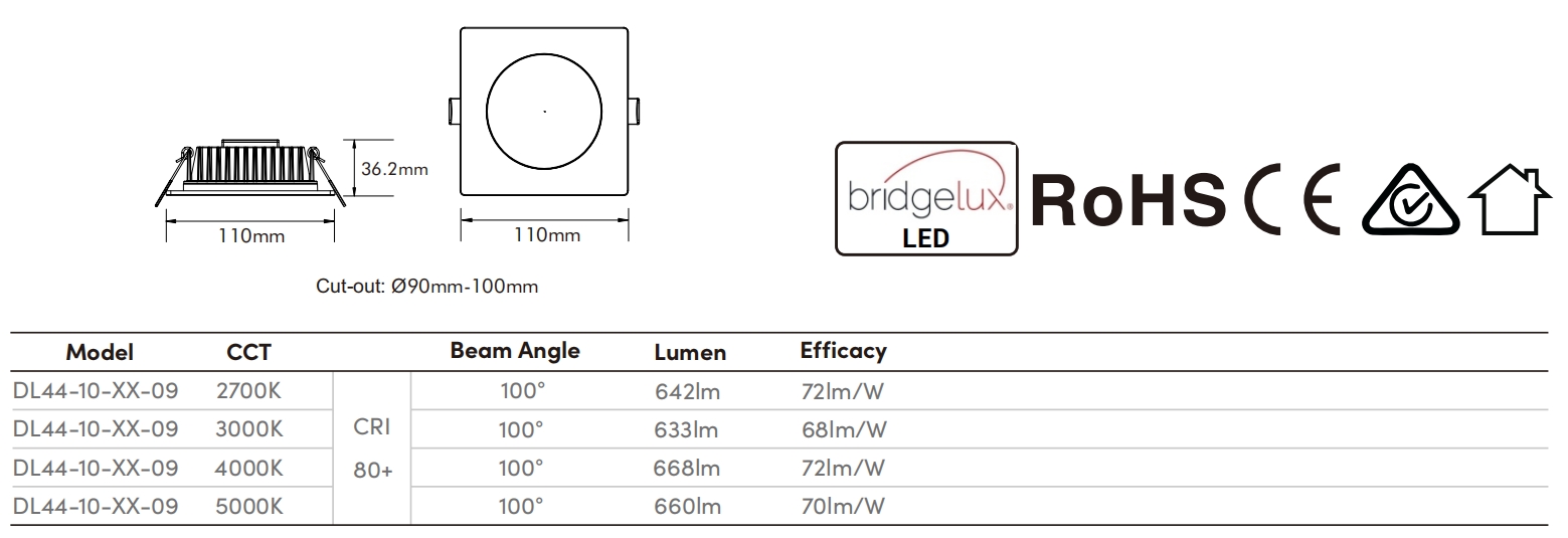 Colour temperatures | 2700K/3000K/4000K/5000K |