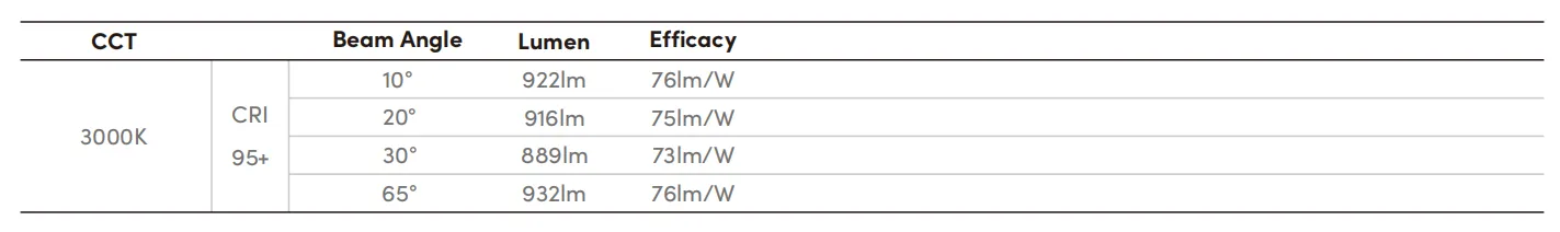 CRI | >95 |
