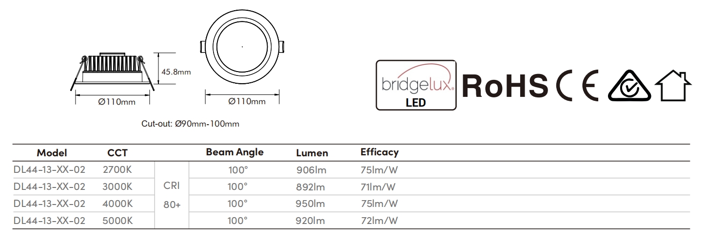 Colour temperatures | 2700K/3000K/4000K/5000K |