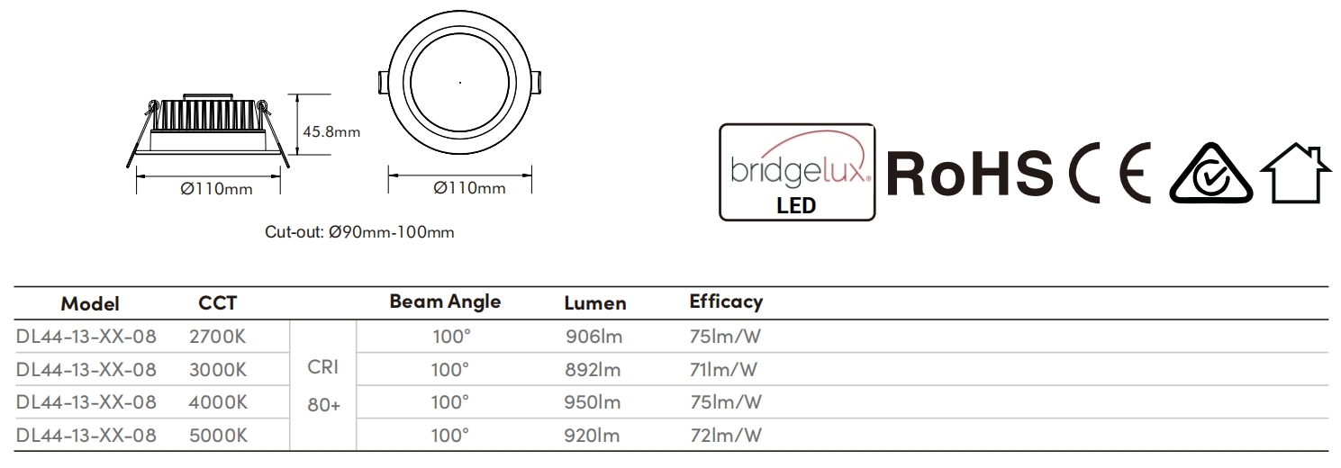 Colour temperatures | 2700K/3000K/4000K/5000K |