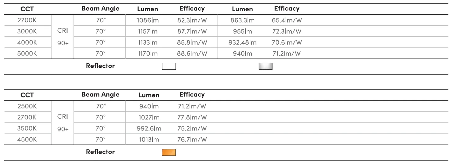 Colour temperatures | 2700K/3000K/4000K/5000K 2500K/2700K/3500K/4500K |