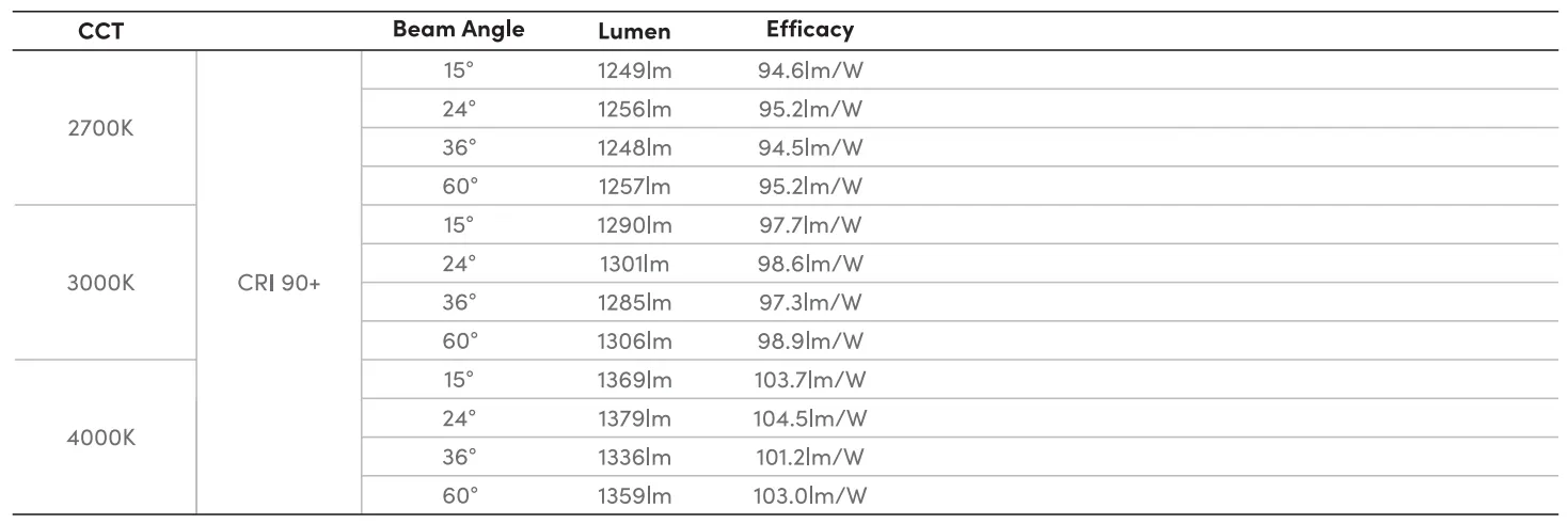 Beam Angle | 15°/24°/36°/60° |