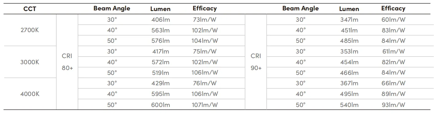 System luminous efficacy up to 107lm/W |