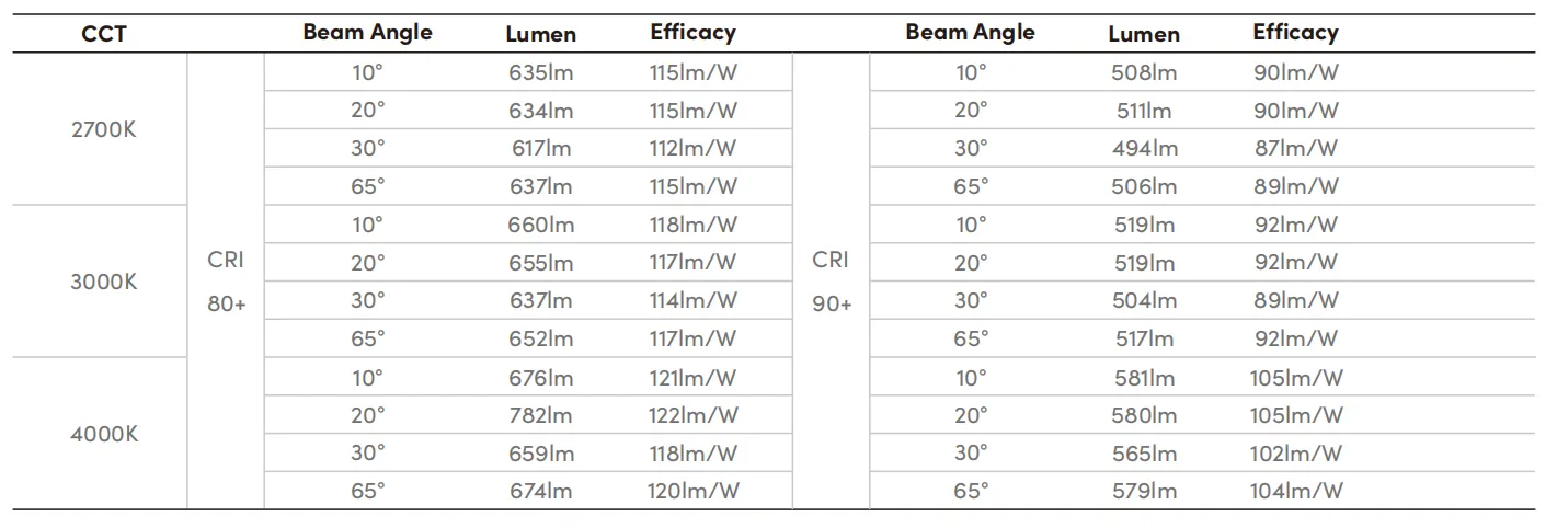 Beam Angle | 10°/20°/30°/65° |