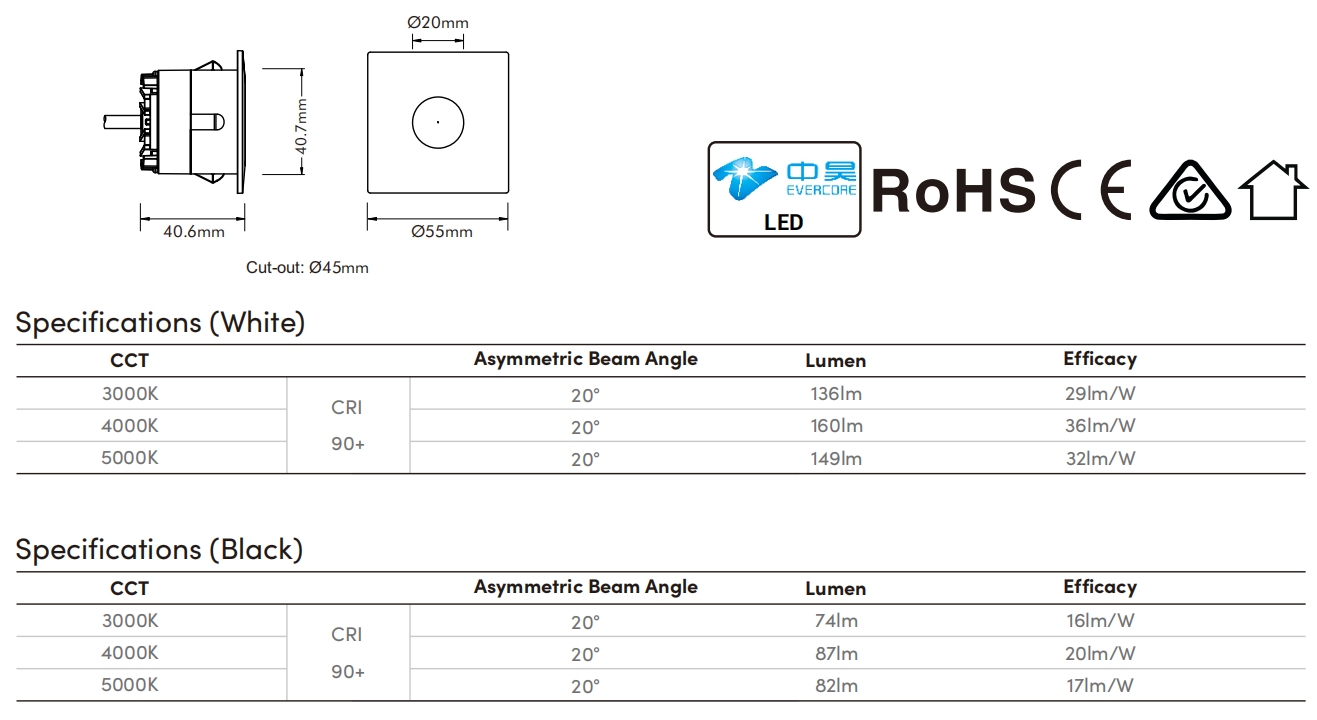 Colour temperature | 3000K/4000K/5000K(3-CCT Changeable) |