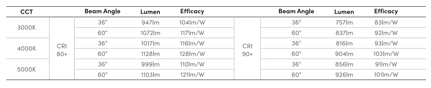 | System luminous efficacy up to 128lm/W | |