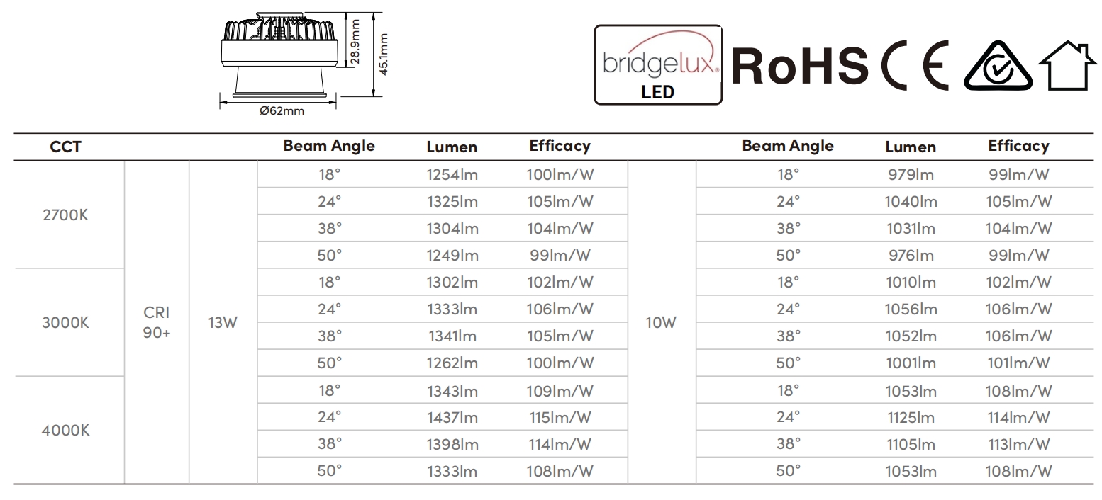 Power | 13W(Max) | 10W(Min) |