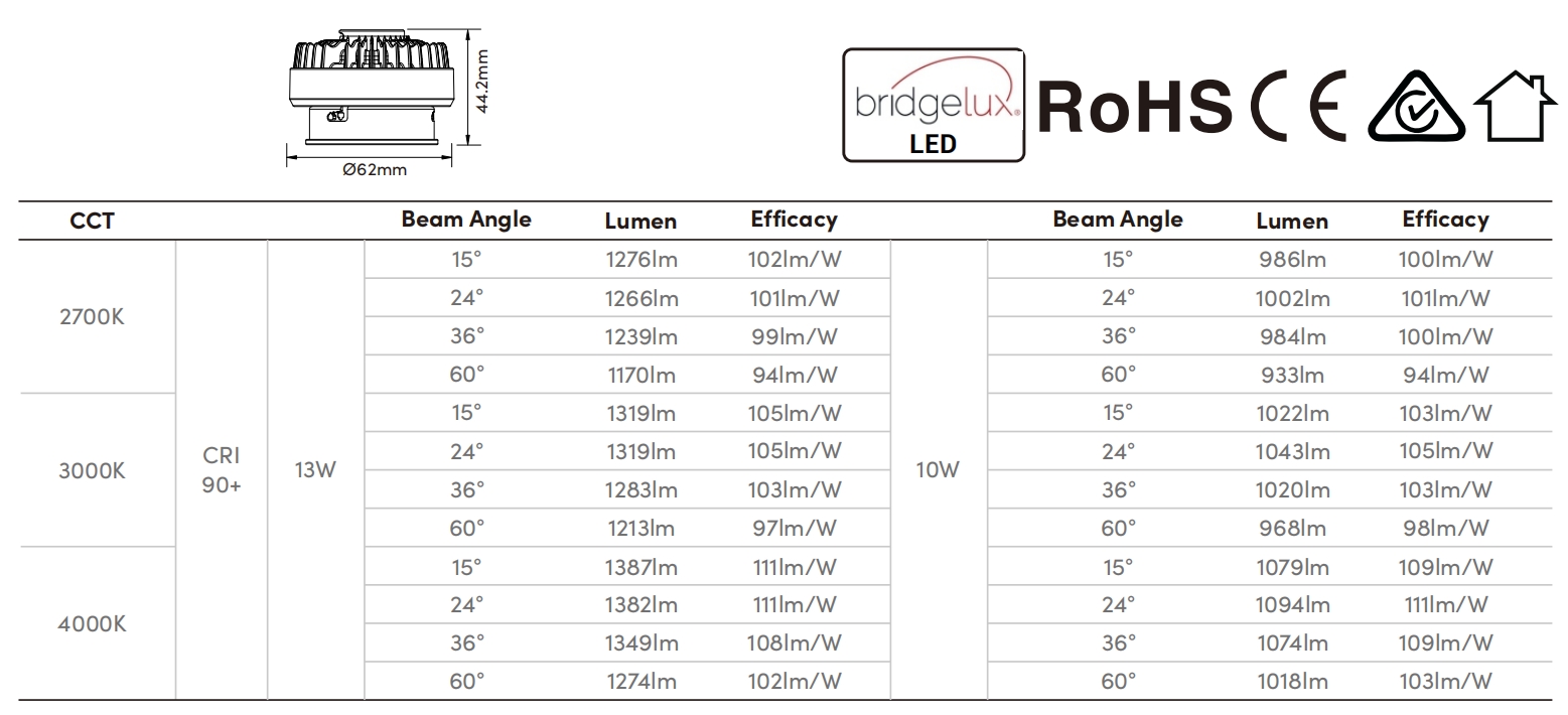 Power | 13W(Max) | 10W(Min) |