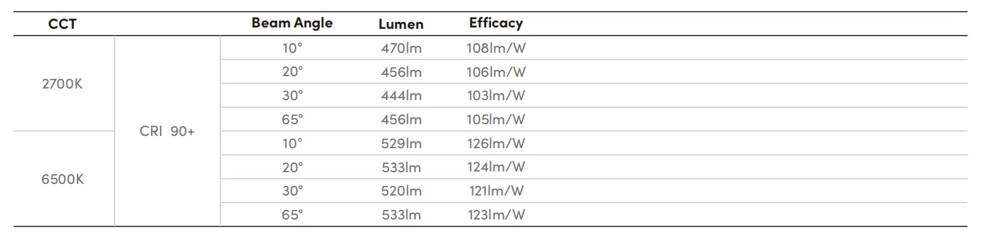 CRI | >90 |