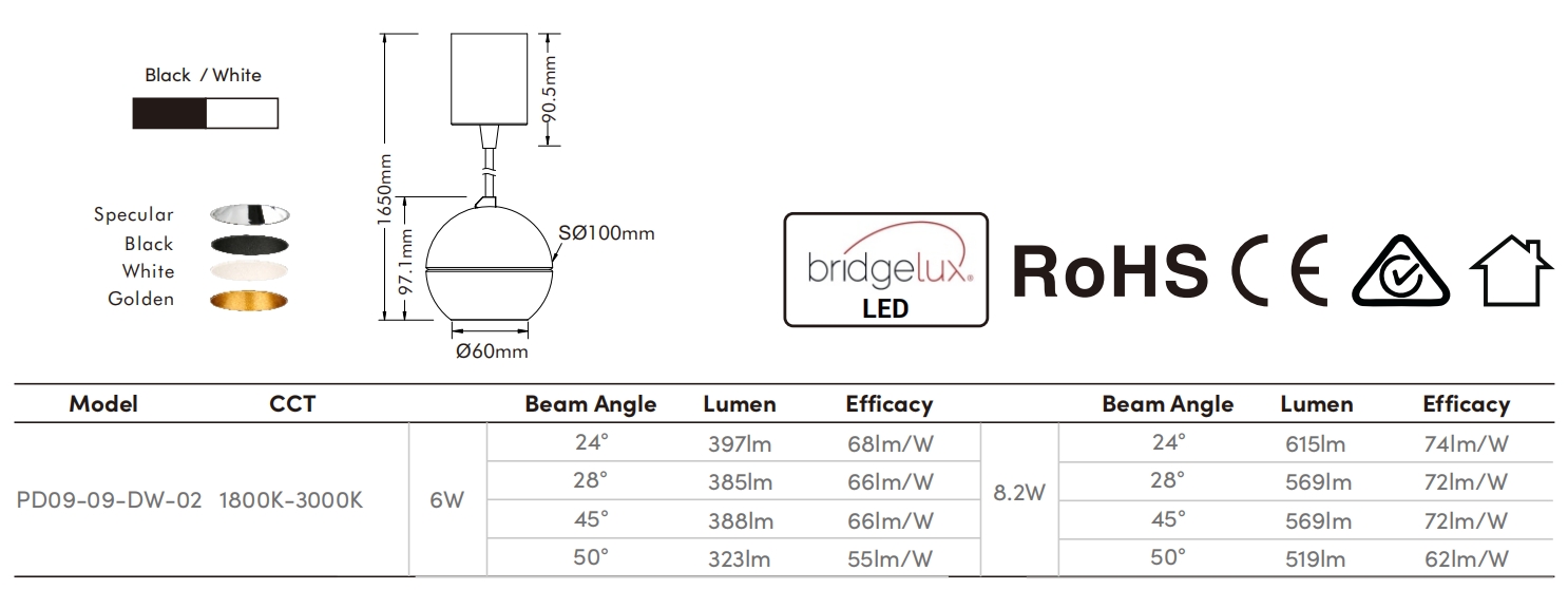 PF value | >0.9(8.2W) | >0.8(6W) |