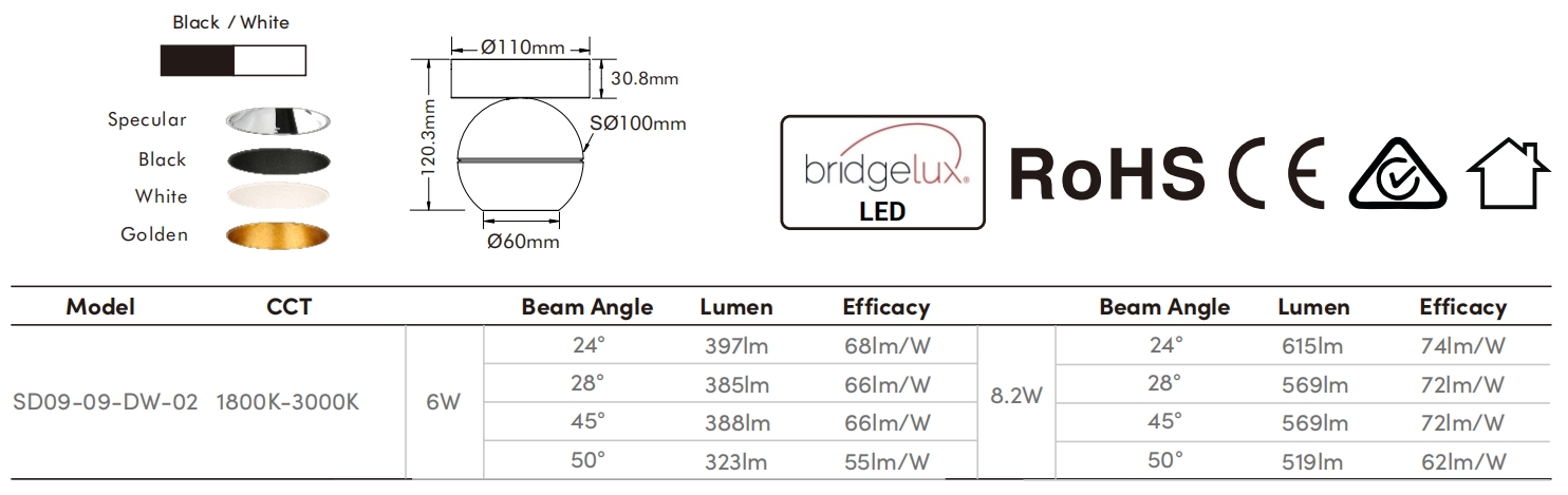 Beam Angle | 24°/28°/45°/50° |