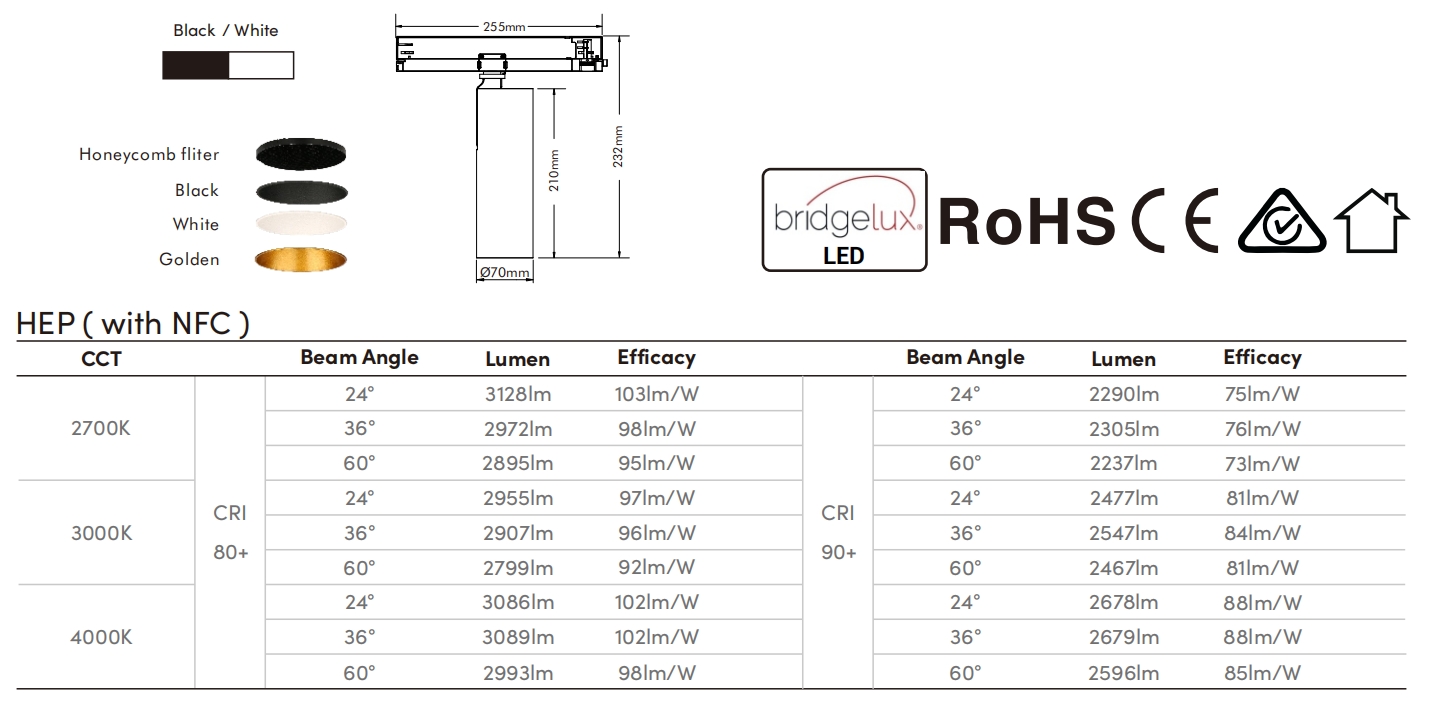 ♦ Controlled by in-track DALI-2 DT6 driver.